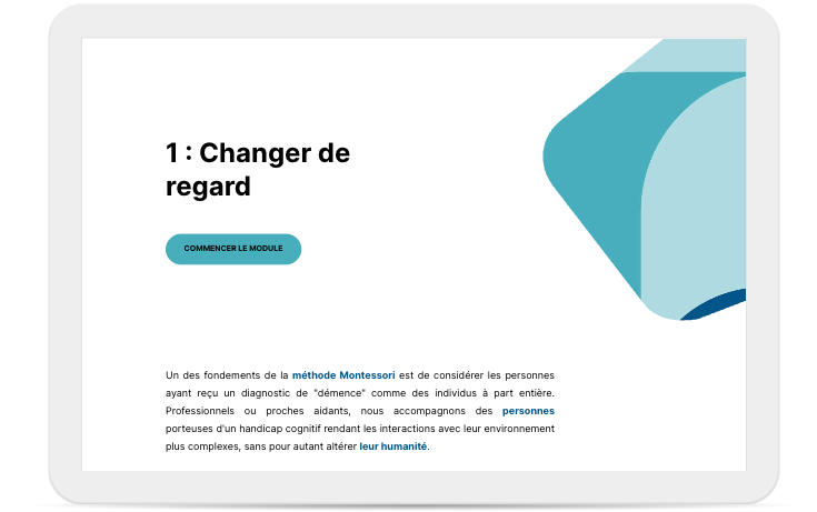 • Comprendre les fondements de la démarche de Maria Montessori et leurs adaptations aux problématiques des personnes âgées présentant des troubles cognitifs.