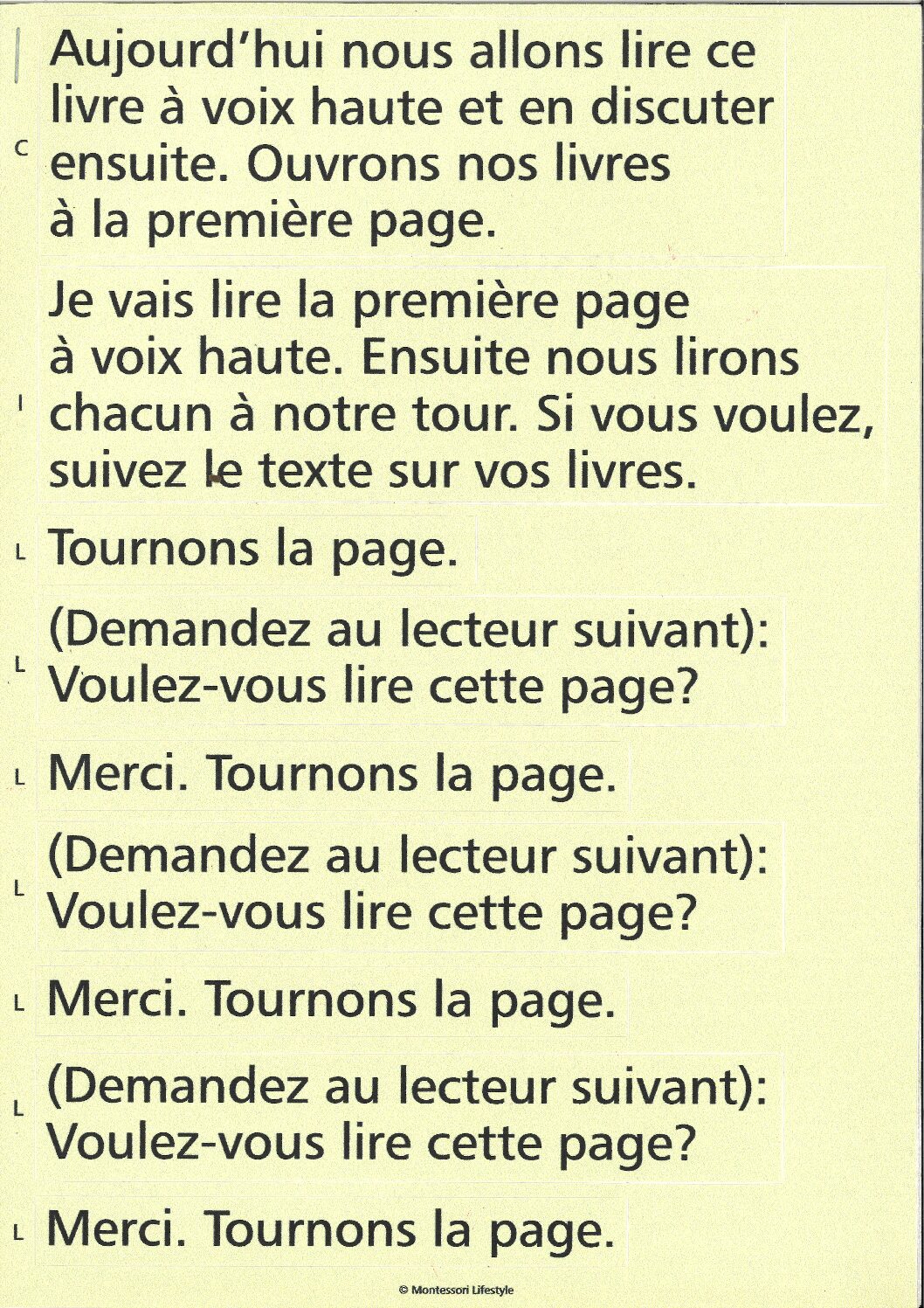 Les stickers que nous vous proposons constituent un élément essentiel de cette démarche. Bien positionnés dans les livres Montessori, ils sont l’aide externe qui permet de guider la personne dans son rôle de leader d’activité. Ils reprennent les consignes à transmettre aux participants et les actions à effectuer pour mener à bien l’activité. De cette manière, même si la personne ne se souvient plus de ce qu’il faut faire, elle est guidée en permanence par le matériel. Tout ce qu’elle a à faire est de prendre l’habitude de les utiliser durant l’activité, ce que vous pourrez lui permettre progressivement en l’accompagnant pendant ses premières séances, puis en vous retirant progressivement. Bien entendu, si ces stickers fonctionnent avec des personnes ayant des troubles cognitifs, ils fonctionnent également avec des personnes qui n’en ont pas (un animateur, un bénévole, d’autres personnes). N’hésitez pas à vous en servir !